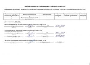 - Перечень рекомендуемых мероприятий по улучшению условий труда 2023 год